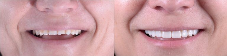 Female patient, 55 years of age, non-smoker and without medical history of interest, nor known allergies to medicines, attends the surgery in order to improve her smile.